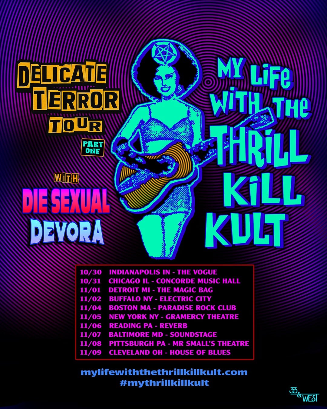 The first leg of the “Delicate Terror Tour” will see Justin Bennett on the road performing with My Life With The Thrill Kill Kult. Support acts on the tour will be L.A. duo Die Sexual and outlaw vixen Devora.