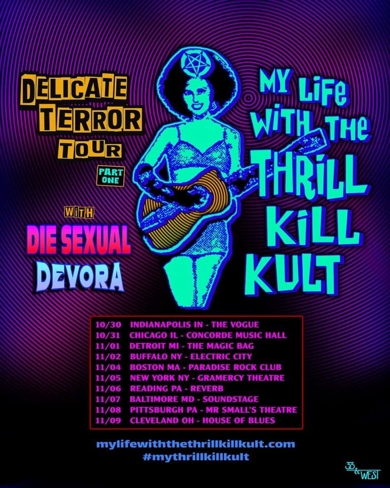 The first leg of the “Delicate Terror Tour” will see Justin Bennett on the road performing with My Life With The Thrill Kill Kult. Support acts on the tour will be L.A. duo Die Sexual and outlaw vixen Devora.